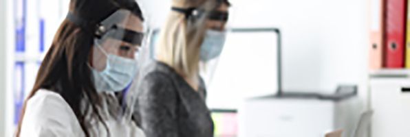 - At fixed work stations where unvaccinated or otherwise at-risk workers are not able to remain six feet away from other people—put in place transparent shields or other solid barriers to separate these workers from others. These barriers should block face-to-face pathways between individuals to prevent direct transmission of respiratory droplets.
